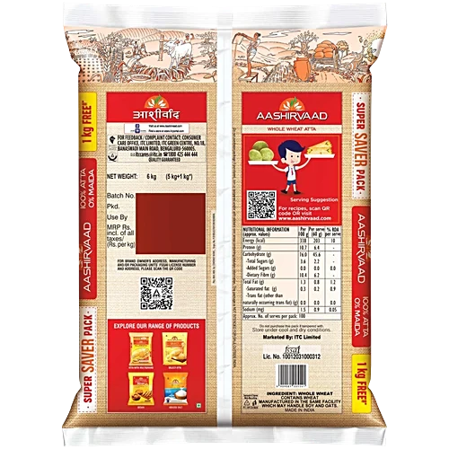 Aashirvaad Whole Wheat Atta is a premium, all-natural flour that has become the number one choice for health-conscious consumers across India. Sourced directly from rural Indian farmers, this 100% pure whole wheat atta is made with the utmost care and attention to detail.
