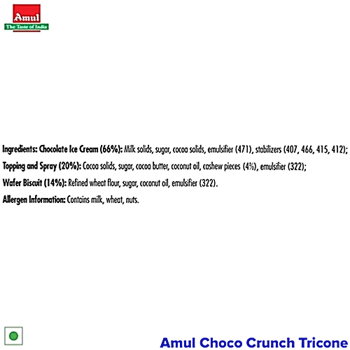 Amul Ice Cream – Tricone, Choco Crunch,120 ml