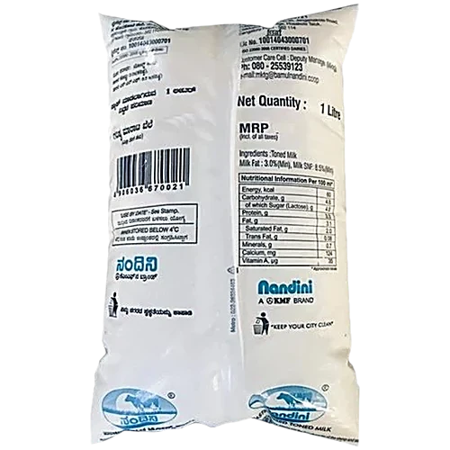 Nandini Pasteurised Toned Milk, 1 L Pouch